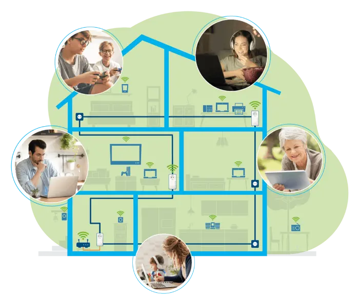 - Powerline is de beste WiFi-oplossing: via de stroomleiding wordt het internetsignaal door plafonds en muren aan elke ruimte doorgegeven – en met een WiFi-adapter wordt elk stopcontact een krachtige hotspot. Betrouwbaarder dan elke repeater!